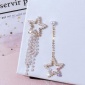 925银针**气质长款流苏不对称五角星耳环女珍珠耳钉个性耳坠饰