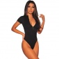 時穎七夕情人節緊身內搭打底短褲女純色V領短袖性感連體睡衣32350