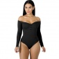 時穎情趣內衣新款純色裹胸一字領長袖無縫歐美性感連體睡衣32315